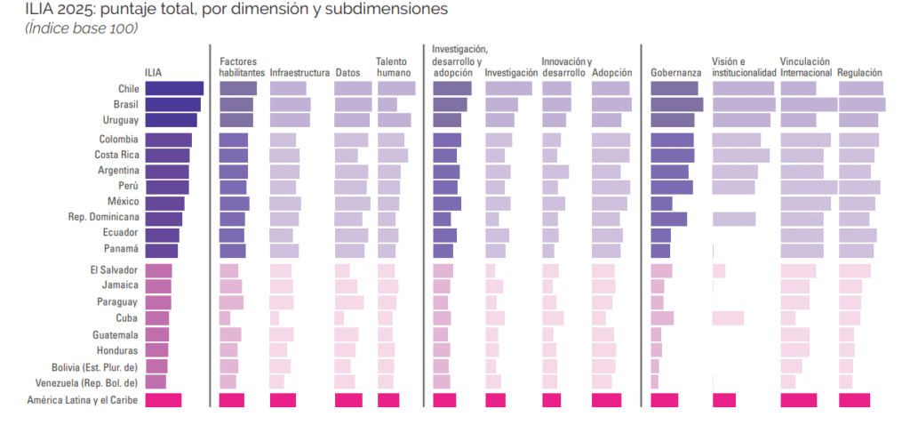 Estudo de IA elaborado pela CEPAL (Comisión Económica para América Latina y el Caribe), em parceria com o CENIA (Centro Nacional de Inteligencia Artificial do Chile), apresentou os resultados do Índice Latinoamericano de Inteligencia Artificial (ILIA) 2025.